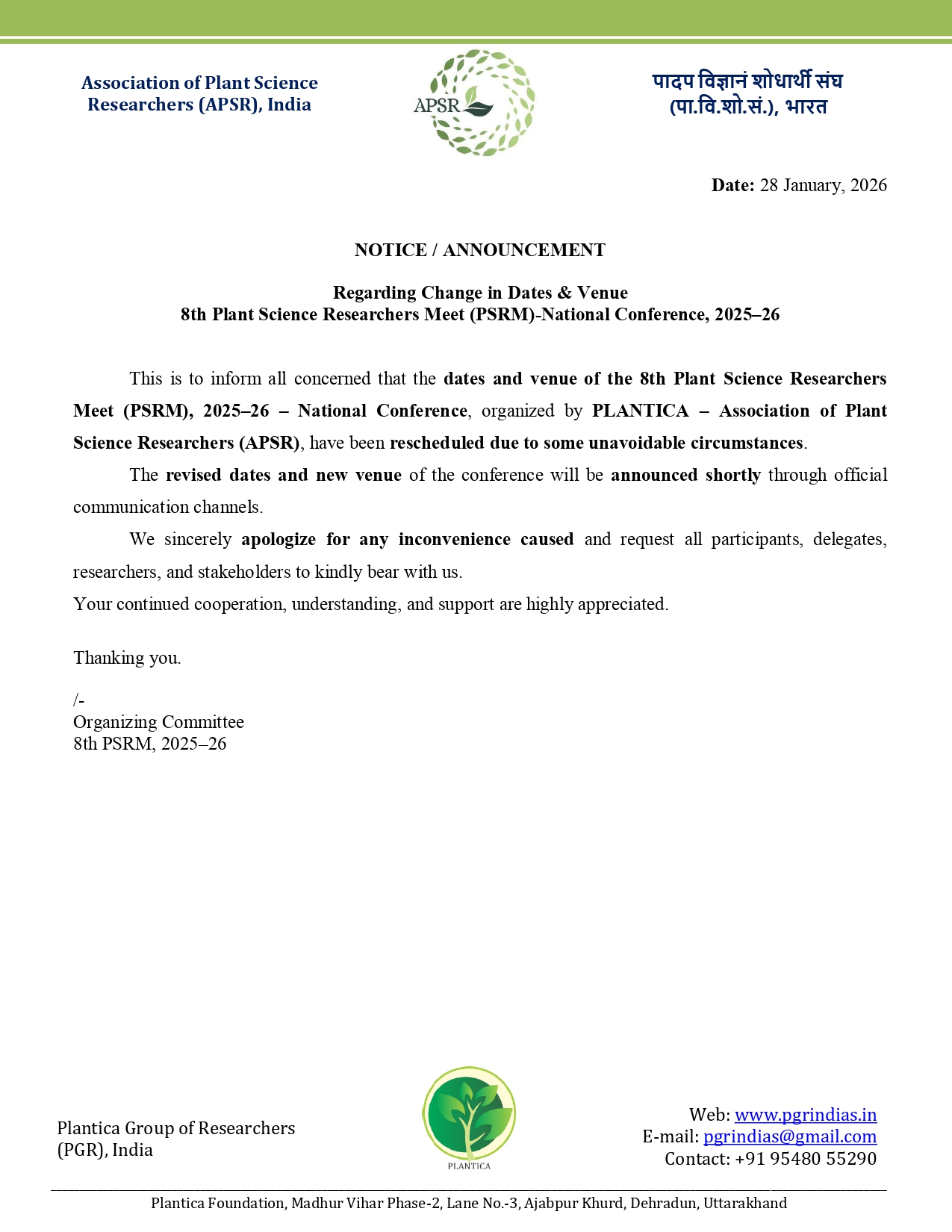 7th Plant Science Researchers Meet (PSRM), 08 – 09 November, 2024